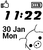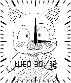 A digital clock with a pig face.