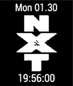 The future is now, so show it off with this nXt watchface. Featuring a month+day indicator, time with seconds.