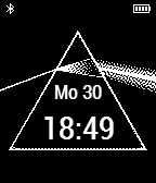 Pink Floyd - Dark Side of the Moon Wochentag - kurz Tag des Monats 24 Stunden Zeit Batterie Status Bluetooth Status Vibration nach 3 Sekunden, wenn Verbindung verloren Vibration bei Verbindung Erstellt auf http://www.watchface-generator.de/