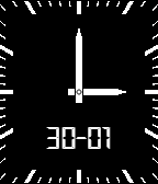 different black is a watch face that shows the hours in the middle and the minutes in the bottom right