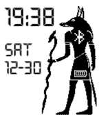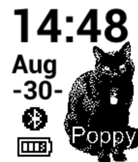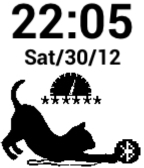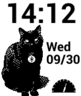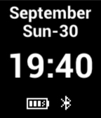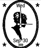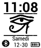 Semaine solaire Affiche les jours selon leur représentation dans le système solaire. Lune=Lundi Mars=Mardi Mercure=Mercredi Jupiter=Jeudi vendredi=Vénus Samedi=Saturne Dimanche=Soleil Heure digital Batterie et Blutooth en orbite autour de Jupiter Bluetooth vibre si déconnecté