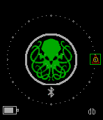 The Elder Sign watchface elements refer to the Cthulhu mythos. The main display shows the Elder Sign with the watch hands represented by a circle (seconds), triangle (minute) and square (hour). Special features include: * When the second hand (circle) coincides with the minute hand (triangle) the display changes to read "Cthulhu Fhtagan" (meaning "Cthulhu Dreams"). * When the second hand (circle) coincides with the hour hand (square) the display changes to show the Necronomicon sigil. * When the second hand (circle), minute hand (triangle) and hour hand (square) coincide, the watch vibrates to notify the wearer that the "stars have aligned" (for this hour) and the display changes to show a depiction of Cthulhu until the minute changes. The watchface also includes a bluetooth connectivity indicator, vibration on bluetooth disconnect and a battery level indicator.