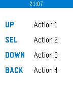 The watch shows simple status feedback when a request is sent or completed. To exit the app, hold the Back button.