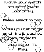 DinkyPop is a super simple ball popping experience! Angle your watch to move your ball to a spot you want. How to play Look for a time where you think you can catch the most balls. Pick your target and press any button. Your ball will start to grow. Any other ball moving in the way of your ball, will start to grow to grow, so on and so forth.