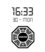 Just a simple white 24-hr watch face with a dharma logo and date.