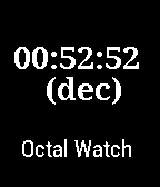 Octal Watch, shows hours, minutes and seconds in octal representation. It's a must have for every geek :-) Just shake your writst to show the human readable time (but only to prove yourself not being a real geek!) Enjoy this geeky Pebble watchface by FLAG Solutions
