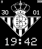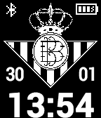 A watchface for supporters of Real Betis soccer club, with time and date. Improved visibility of time and date. Bigger icons for bluetooth and battery. Manque pierda!