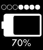 Shows battery level (%) and -lifetime (days in dots). The lifetime days are displayed in 7 dots. A white dot is one day of your battery lifetime. V4: Configurable via Phone settings (vibrate & period). V6: Bug fixes & blinking '+' when charging. V7: Minor bugfixes. -Gio-