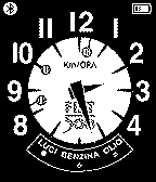 Shows battery level (%) and -lifetime (days in dots). The lifetime days are displayed in 7 dots. A black dot is one day of your battery lifetime. New feature: V4: Configurable via Phone Settings (vibrate & period). V6: Blinking '+' when charging. V7: Minor bugfixes. -Gio-