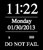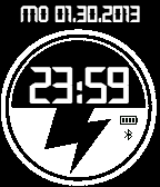 Exceedingly simple digital format time, divider and verbose date information. Made with watchface-generator.de. Pebble battery and bluetooth status included in the design.