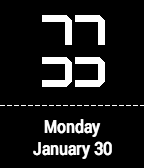 Classic typeface for digital, simple and elegant analog face design. Battery level at the 6:00, and nothing else. Feng shui, squared.