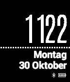 Simple digital, date in German separated by dotted line.