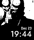 A simple watchface for Pebble. Insipred by an illustration from "Hellboy: The Lost Army" novel. Features: - battery meter is a bottom thin line under ⚡ on HB's right shoulder; - bt connection indicator, no vibration; - unobstructed area squish; - settings: - toggle am/pm; - toggle leading zero; - weekday or month name;