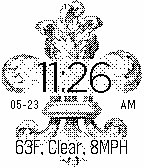 Fleur De Lis is a simple yet elegant watchface featuring the iconic Fleur-de-lis graphic. It shows 24h and 12h with meridian, date, temp (F), weather and windspeed for your location.
