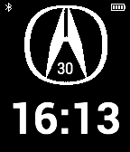 a digital watch face with the acura logo in it with a battery indicated and a bluetooth indicater