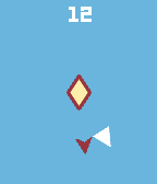 A very simple and minimalistic watchface that uses a triangle to display what hour of the day it is, and an arrow to display the minutes. The center of the watchface is bordered using the same color as the minute hand, and functions as a battery indicator, displaying light blue for a battery above 50%, yellow for below 50%, and red for below 20%.