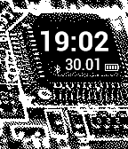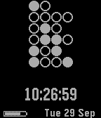 This basic watch face displays the time both in digital and binary, as well as a battery level indicator and current date. The binary group is read top down.