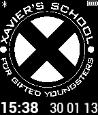 Here's a watch face emblazoned with the logo for Xavier's School For Gifted Youngsters. Remember: Mutant and proud!
