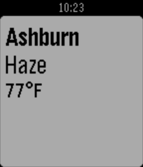 Simple weather app that finds your location and displays your location, a description of the weather, and the temperature. Press Select while in the app to determine the unit used for measuring temperature.
