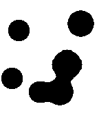 A binary watch display with the bits drawn as metaballs. On each minute they move into a new configuration.