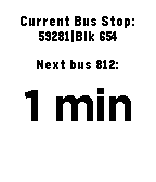 Visually-impaired friendly watchapp that tells the arrival times of buses at the bus stop you're at using vibrations. Usage: Selecting the bus: Up / Down - Select the current digit of the bus number. The number of vibrations that follows is the currently displayed number. Select - Move on to the next digit, starting from 0. If there are already 3 digits, this confirms the bus number. (Long press) Select - Confirm the bus number. Selecting bus stop, before selecting bus number: (Long press) Up / Down - Go up or down the list of 10 nearest bus stops, displayed at the top of the screen. The closest bus stop is selected by default. (Long press) Select - Refresh bus timing.