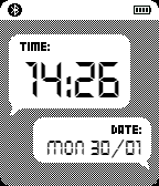Stylish font face showing time, weekday and date. Features: -Setting free -12/24 hr display based on system setting -Battery level indicator -BT connection indicator -BT disconnect vibration and watchface color inverting