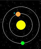 A minimalistic watchface that displays the time using two planets orbiting a sun.