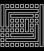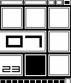 Inspired by the Neon IO X watchface. Nine-by-nine grid that fills in with the time. Reads from inside to out. Supports both 12-hour and 24-hour formats. Vibrates on Bluetooth disconnect/reconnect. Digits formatted similar to 7-segment display, with exception of 8 (two horizontal bars; see images 2 and 3). Image 1: 02:03 Image 2: 08:18 Image 3: 18:54