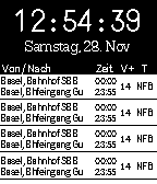 A Pebble watchface, that shows you the next public transportations (bus, tram, train, etc...) departing from or nearby your current location. It will also notify you about delays and cancelations. Attention: This only works for Switzerland.