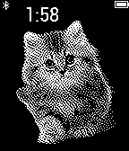 An image of a cute kitten with a small font time displayed above. Vibrates on disconnect (does not invert) Note: Looks better on the watch