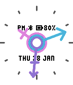 An analog watchface where the watch hands are gender symbols.