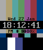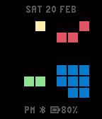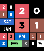 Every digit, day of week, month, symbol, and status can be given its own color. Set the colors according to your own grapheme-to-color synesthesia and read the time in color!