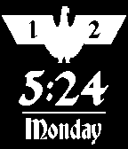 Includes the time, day of the month, month, day of the week and an eagle image.
