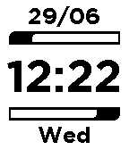 A watchface that uses the Gotham Book font and includes the time, date, day of the week and two battery lines. The white sections of the battery lines indicate how much battery is left.