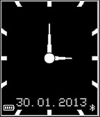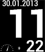 Simple digital watchface with big hour and smaller minute. Invert and vibrate when lost connection to Your phone (>3s). Battery indicator and connection status on the left