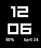 A simple Watchface that contains the four essential features every Watchface should have. 1. The time (of course) 2. The date (with the month spelled out) 3. The battery percentage and charging status 4. Bluetooth connection indication (colors reverse when not connected) This Watchface supports both 12 and 24 hour clocks.