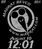 A simple watchface with the Mad Rat logo. Features Bluetooth and battery indicators.