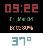 Basic watch face with time, date, battery percentage and temperature displayed easily. If you have any suggestions or things I could do differently feel free to contact me with your ideas. Color selection coming soon