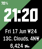 Watchful is a beautiful, clean and elegant watch face with everything you need just a glance away. - Get in shape! Set a step goal and see the outer circle grow as you go! - Easy to see battery ring warns you when battery is at 20% - Temperature, conditions and wind direction/strength powered by wunderground.com or openweathermap.org (API key needed) - Configurable date view - Shake to see battery and step details - Optional bluetooth disconnection alert - User-configurable colours - Easy to read, elegant time display (hey - it's still a watch!)