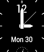 Simple analog watch face displaying the day, date, bluetooth connection status and battery level.