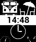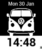 A classic VW Campervan with a simple time and date display. Shows bluetooth status and vibrates on disconnect. Leave some love by hitting the heart :)