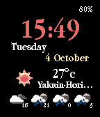This watchface has current weather and 3-hourly weather forecast. This is using OpenWeatherMap API.