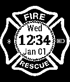 A simple maltese cross with digital display, bluetooth indicator and battery indicator.