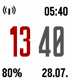 The DigTap watchface is simple and elegant. With a tag of your wrist you will get more informations for 5 seconds. In the corners you see the bluetooth connection state, either the week of year or a second timezone (adjustable in the settings), the battery state and the date. You can choose colors for background, info, hour and minute digits. You are able to avoid backlight or you decide backlight appears on a single or double tap of your wrist.