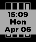 Shows the time in binary, four bits per time digit. Time is shown in either 12- or 24-hour mode, as set in the watch settings.