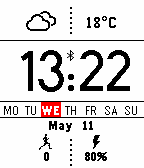 Analog face featuring: * Battery meter * Configurable Current Weather Temperature (F/C) * Current Weather Conditions