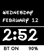Updated to 1.1 (fixed a few bugs). Based off the Simplicity Watchface from pebble. Time and date in Disney font. Bluetooth indicator and battery percentage displayed on the bottom.