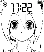 Hatsune Miku on mic face with digital clock and large Bluetooth looks like hairpiece