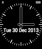 The first version of the amazing analog watchface. The transparent hands travel round the clock displaying the time. This watch also displays the date (dd/mm/yy), the battery bar and if it is bluetooth connected.
