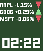 Shows you stock data for up to 4 stock symbols --Features-- -Customizable colors -Optionally vibrate every hour -Optionally vibrate on Bluetooth disconnect *After a 24-hour free trial the watchface will cost 0.99$